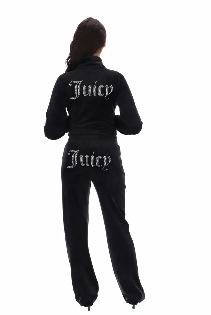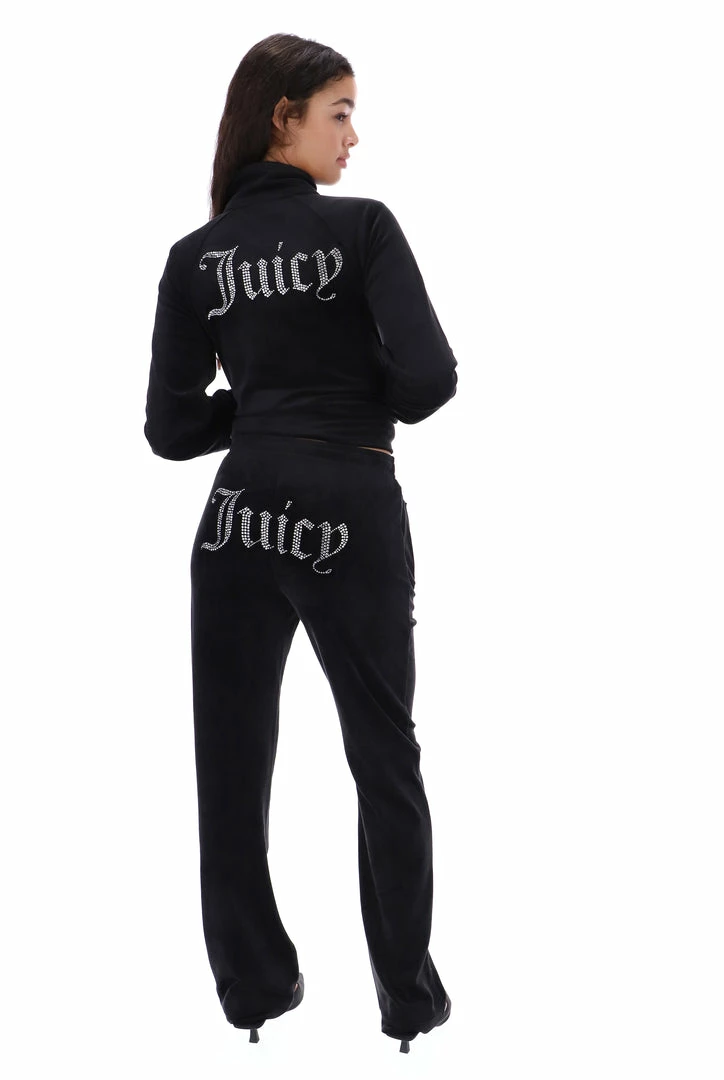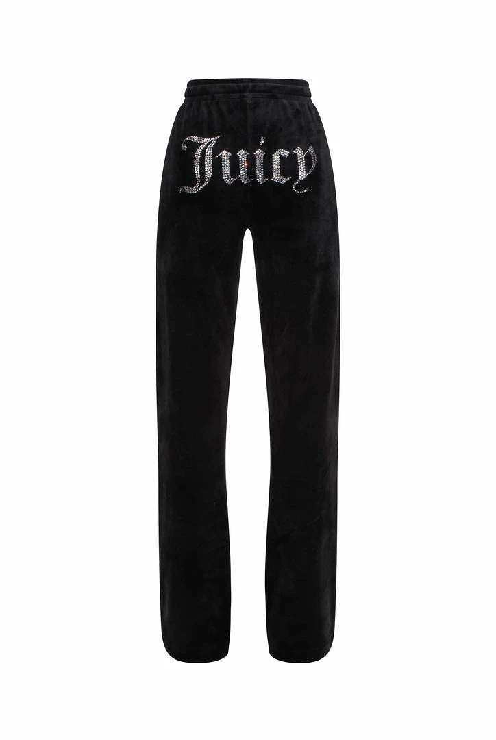 BLACK VELOUR DIAMANTE TRACKSUIT BOTTOM