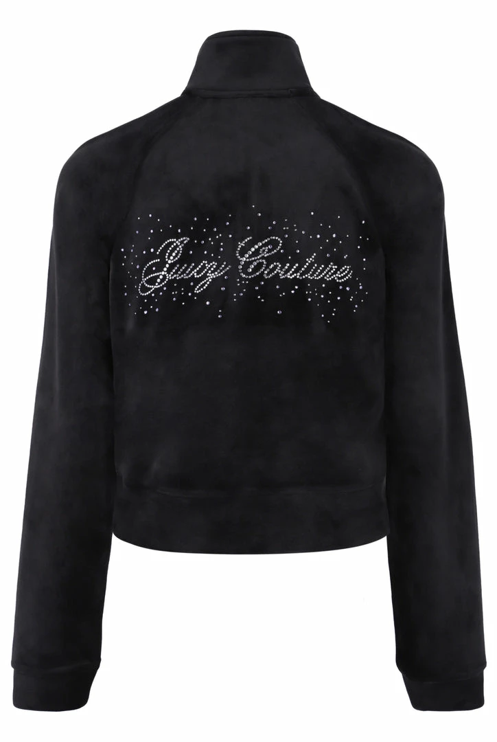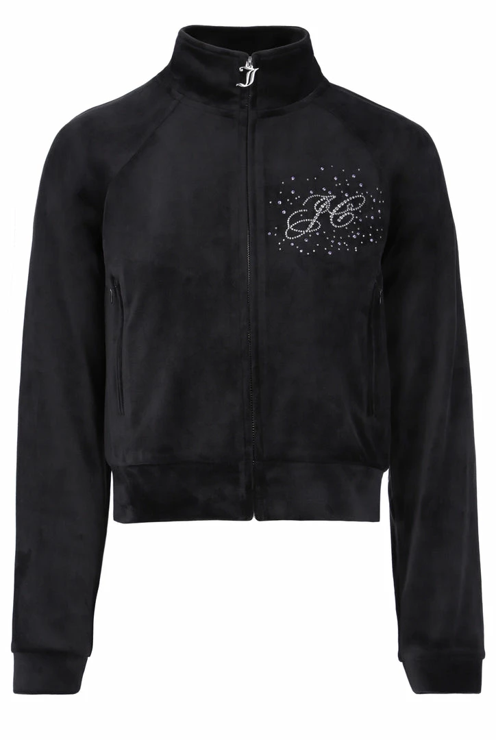 BLACK VELOUR SCRIPT DIAMANTE ZIP UP TRACK TOP
