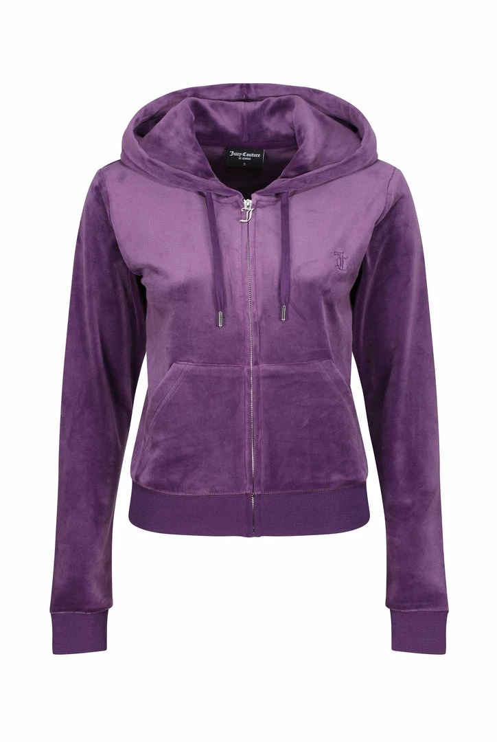 Zip through hoodie in blackberry cordial classic velour. Slim fit, with kangaroo pockets and a self-fabric lined hood, this core hoodie features a statement gothic J zip pull and is branded with a tonal embroidered JC logo at the chest.
