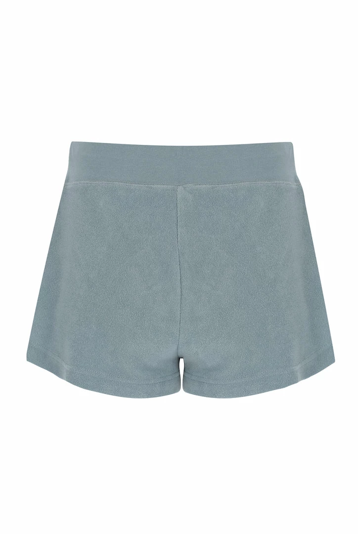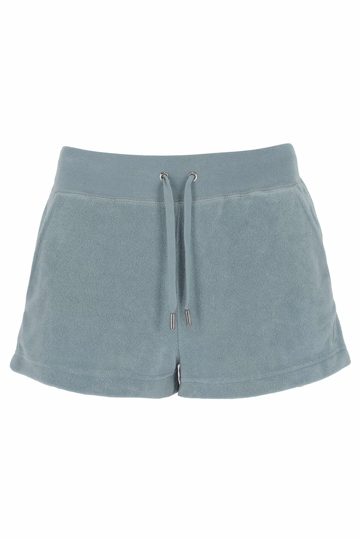 Mid-rise plain shorts in chinois green terry towelling. A short flirty fit, with adjustable drawstring ribbed waist and front angled pockets. These inconic core track shorts are branded with silver hardware and a tonal embroidered JC logo at the hip.