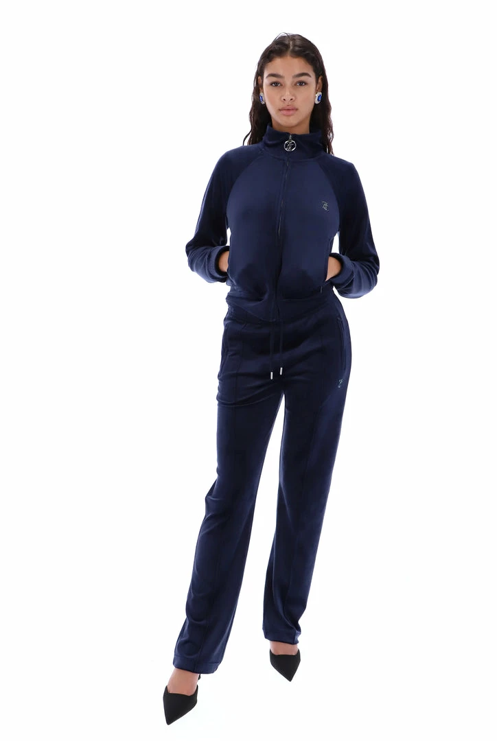 NIGHT SKY BLUE VELOUR DIAMANTE TRACKSUIT BOTTOM