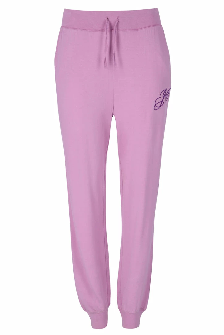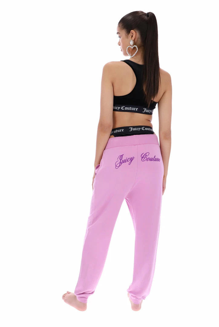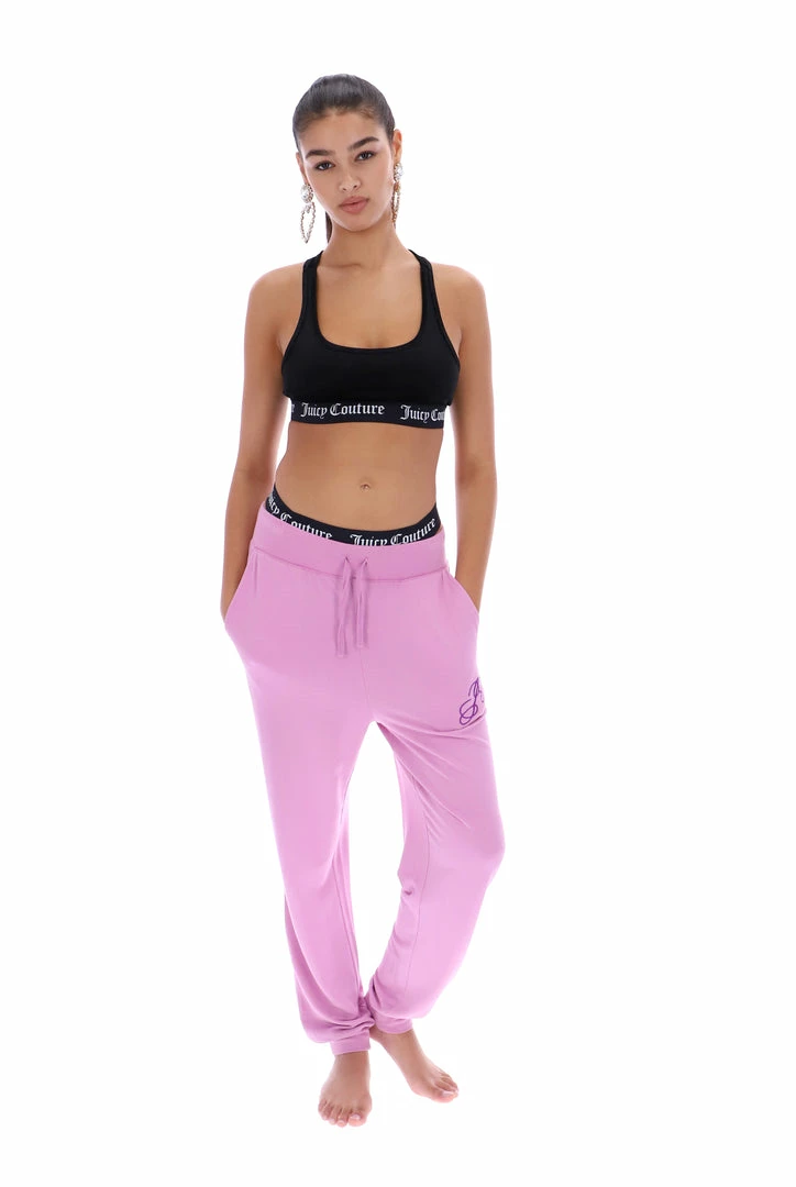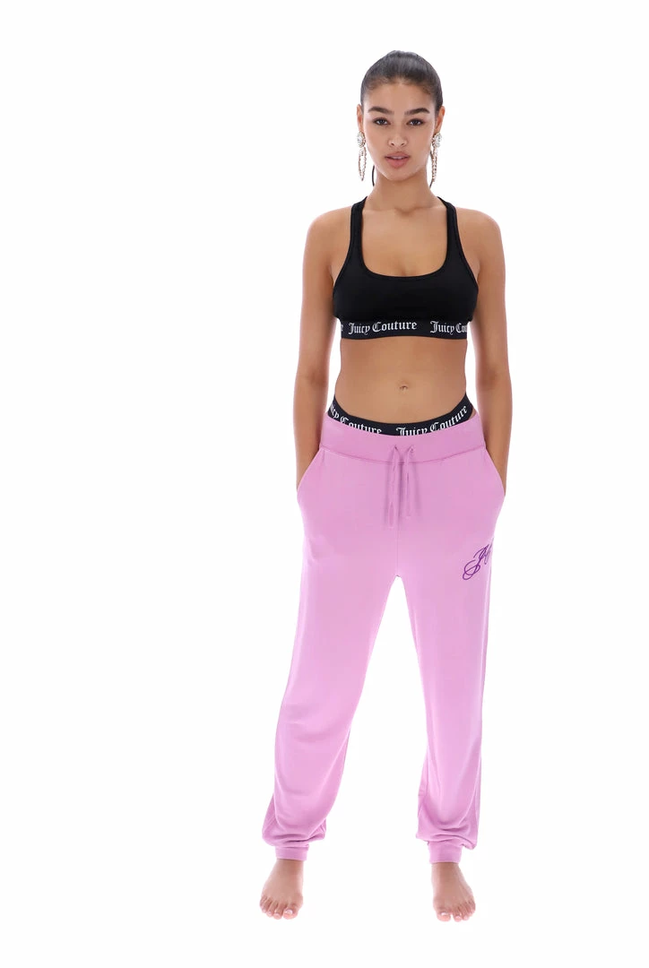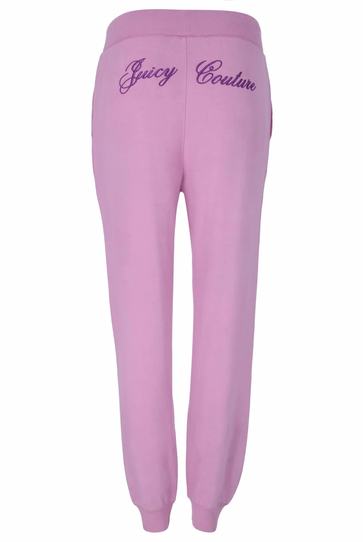 Introducing our sustainable development range. Bamboo blend joggers in orchid brush back fleece. These slim fit bottoms are soft to touch; made with a natural, renewable fibre yarn and is branded with the ‘JC’ logo on left leg and ‘Juicy Couture’ across back. Pair with the matching cropped sweat for a relaxed loungewear look.
