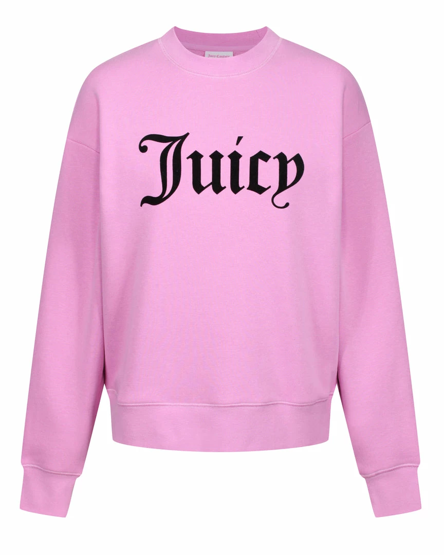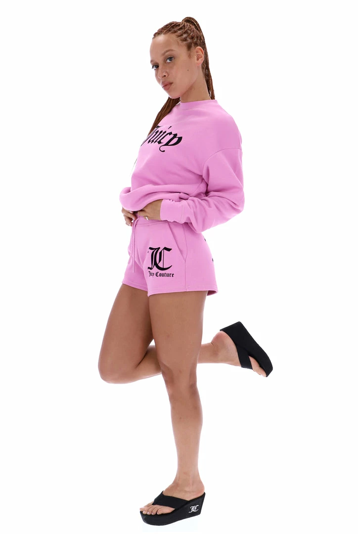 Standard fit crew neck sweatshirt in orchid soft brushed back fleece. This sweatshirt features ribbed cuffs and is branded with ‘Juicy’ flock print through chest. Complete the look with the matching shorts.