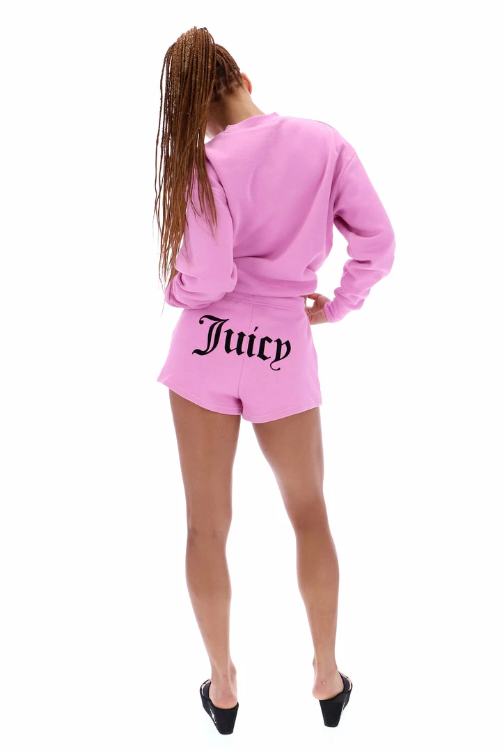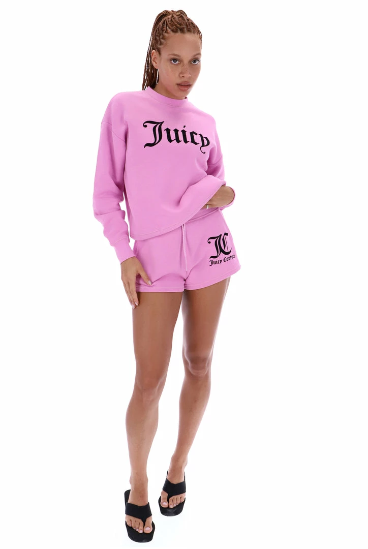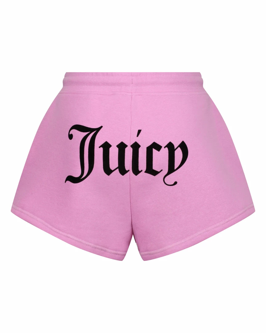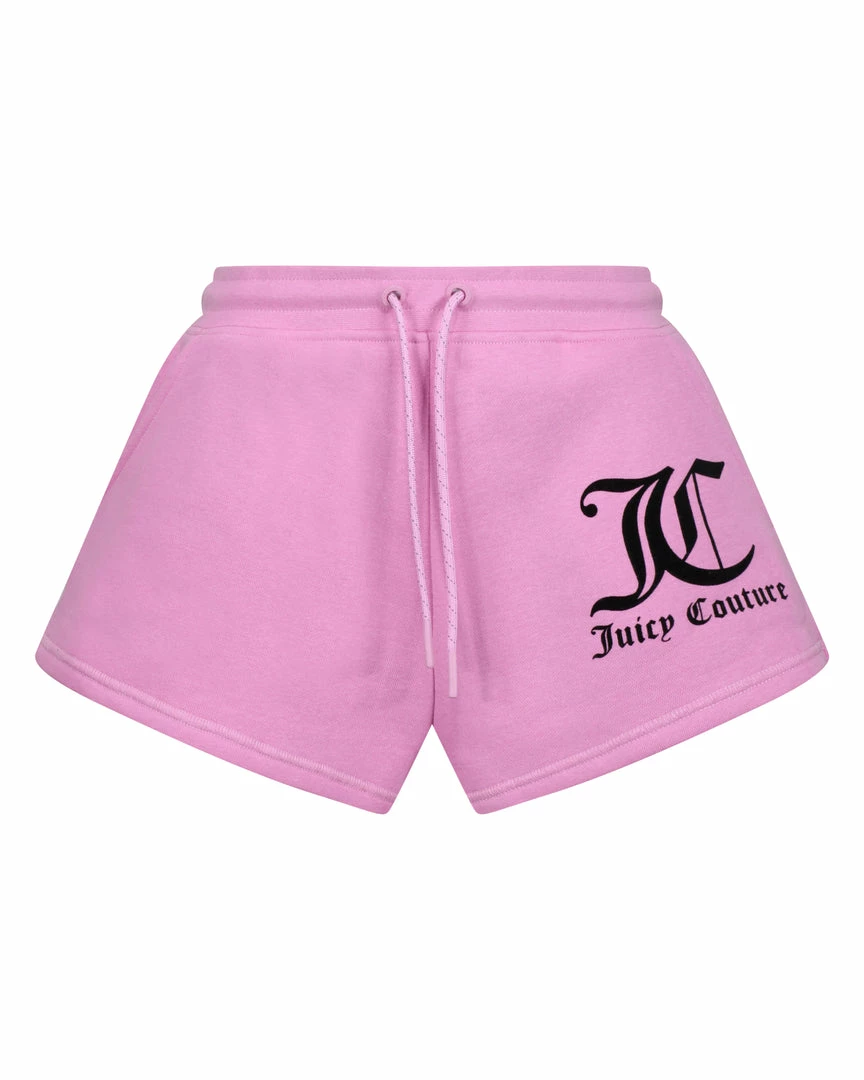 Mid-rise track shorts in orchid soft brushback fleece. These shorts feature a smocked waistband and are branded with a contrast JC flocked print on left leg. Pair with the matching sweat for a casual sports look.