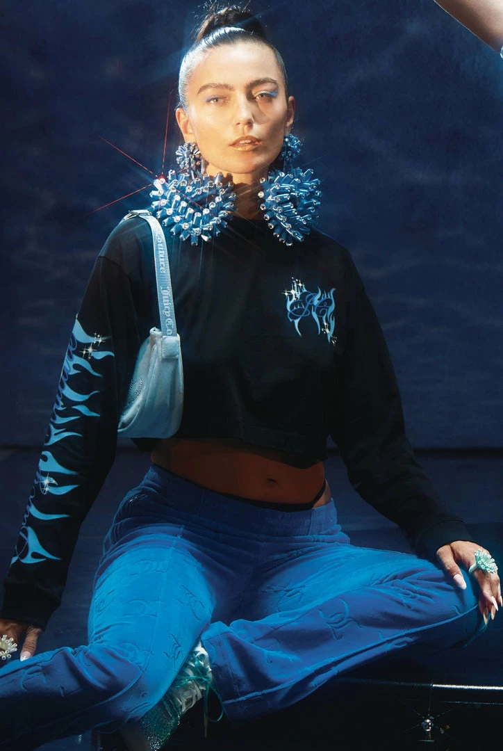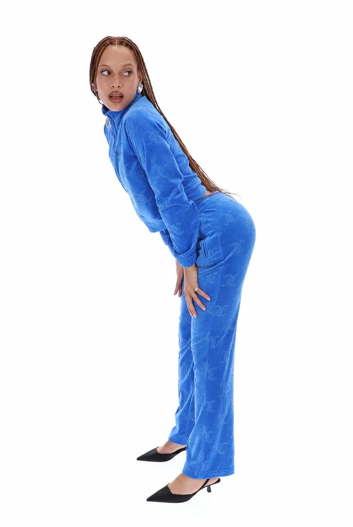 PRINCESS BLUE MONOGRAM VELOUR TRACKSUIT BOTTOMS