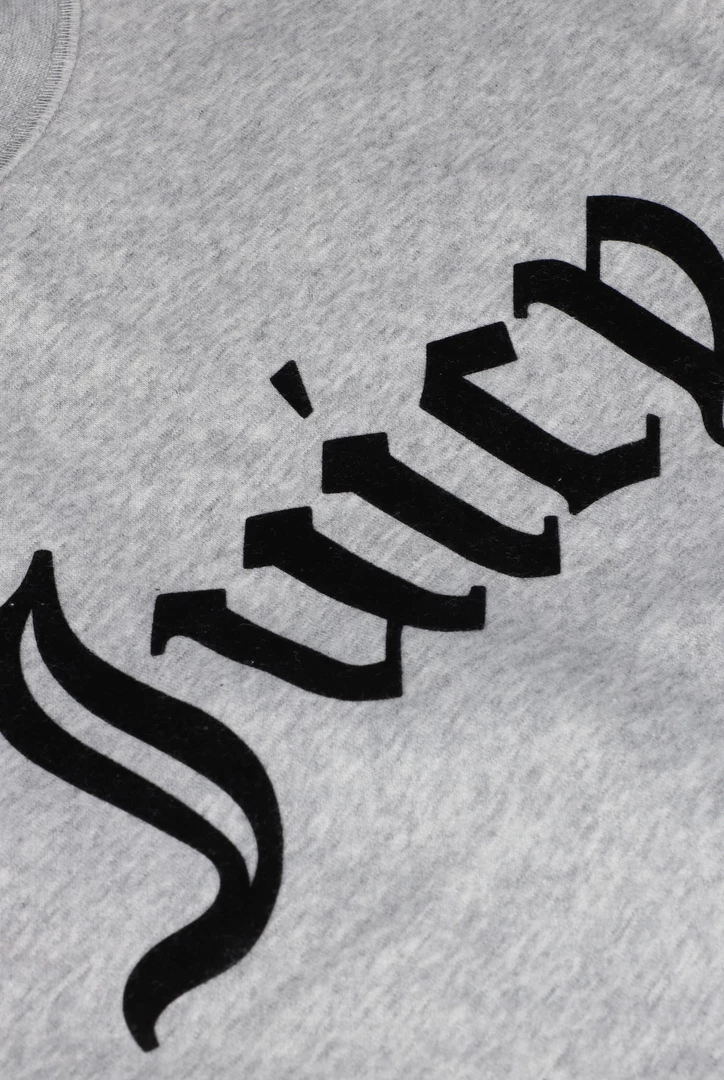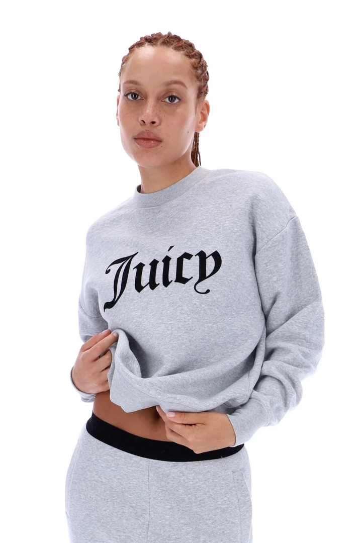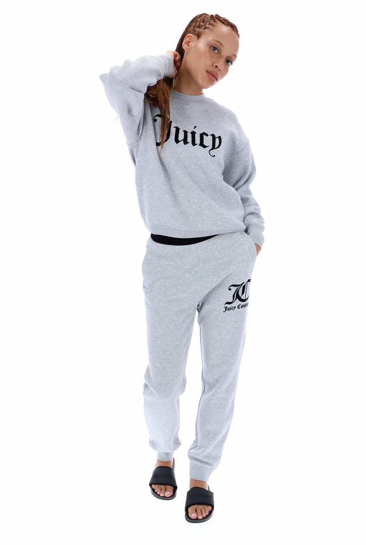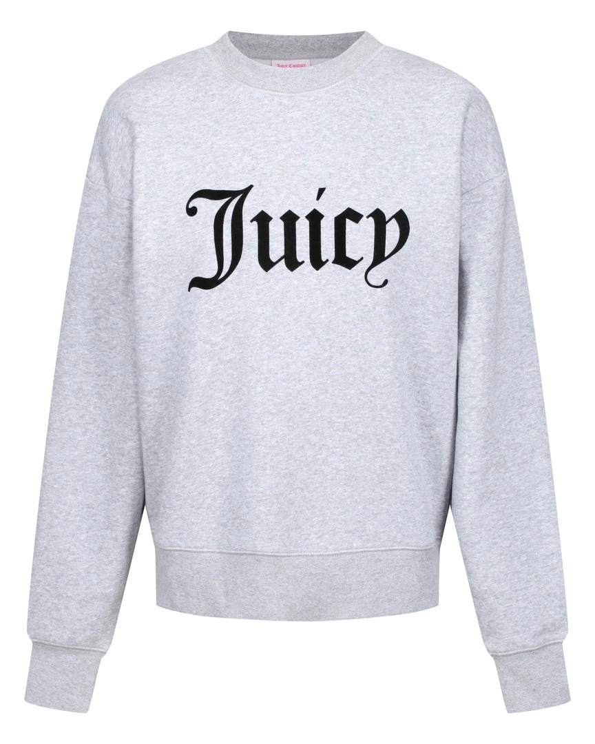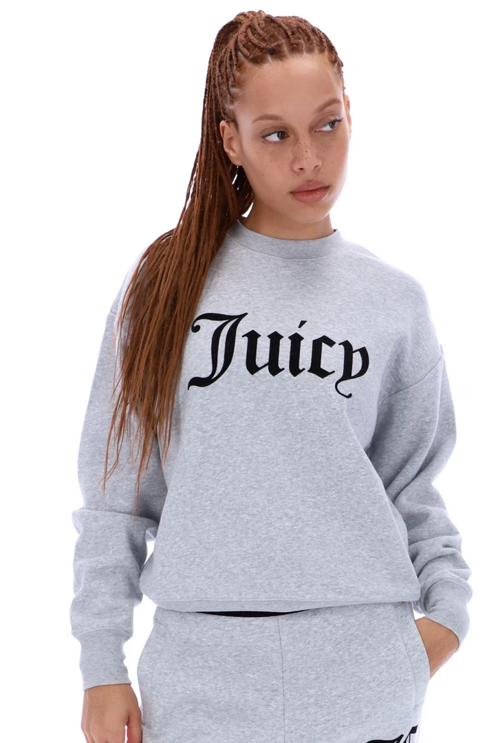 Standard fit crew neck sweatshirt in silver marl soft brushed back fleece. This sweatshirt features ribbed cuffs and is branded with ‘Juicy’ flock print through chest. Complete the look with the matching shorts or joggers.
