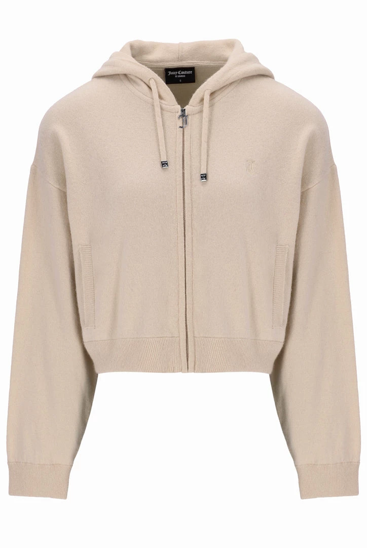Zip through knitted hoodie in warm taupe cashmere blend. Boxy fit with kangaroo pockets, this premium hoodie features a statement gothic J zip pull and is branded with a tonal embroidered JC logo at the chest