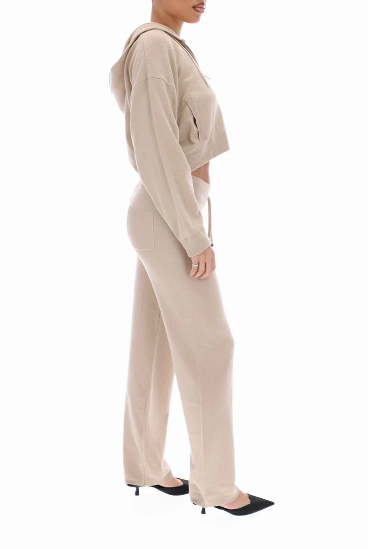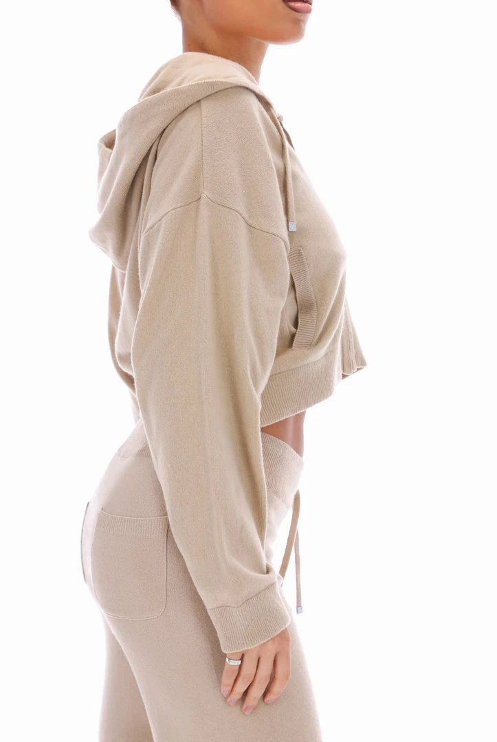 WARM TAUPE CASHMERE BLEND KNITTED HOODIE
