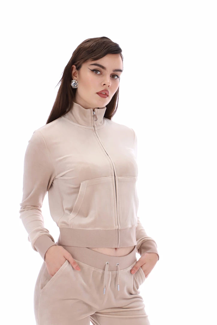 WARM TAUPE CLASSIC VELOUR TRACK TOP